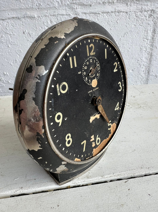 Vintage Big Ben Alarm Clock, 5.5" Black Old Clock, No Glass 1940s