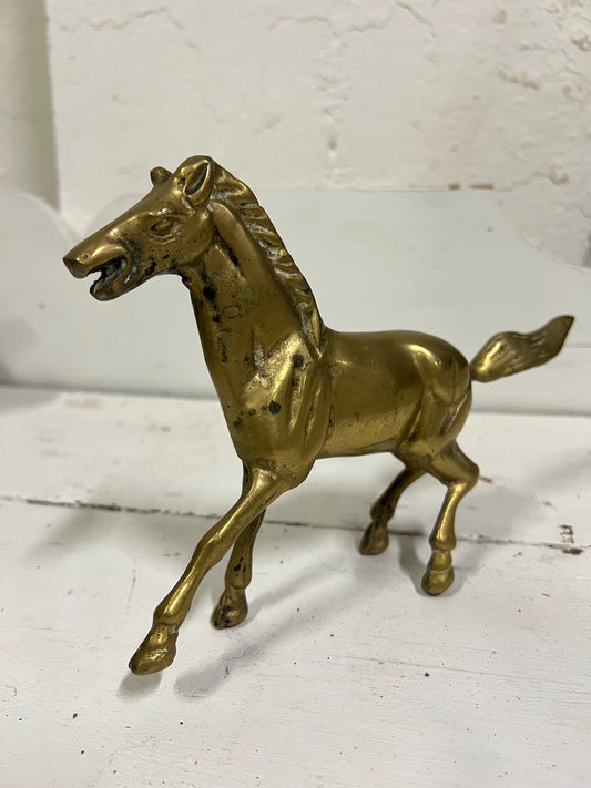 Vintage Brass Horse, 6" Tall, Vintage Brass Animal, Vintage Horse Figurine, Brass, Patina