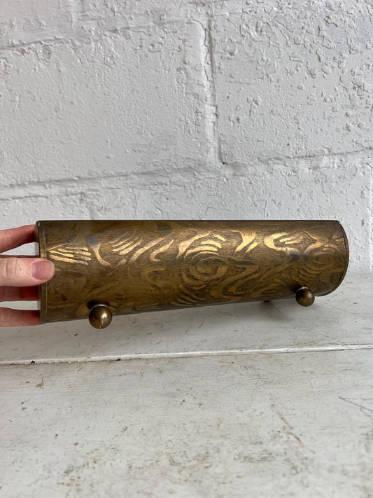 Vintage Brass Planter with Wood Grain Detail 12" Long, Vintage Brass Decor, Vintage Decor, Brass, Patina, Old Planter, Unique Vintage Brass