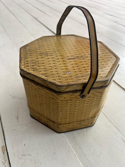 Vintage Brown Metal Tin Basket and Lid, Rusty Tin Vintage | Loose-Wiles Biscuit Company Tin Basket, Sunshine Biscuit Tin