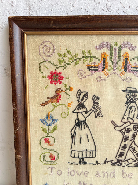 Vintage Amish Country Needle Point, Cross Stitch Art 14"x18" | Vintage Cross Stitch | Vintage Country Art, Handmade Home Decor, Old Decor