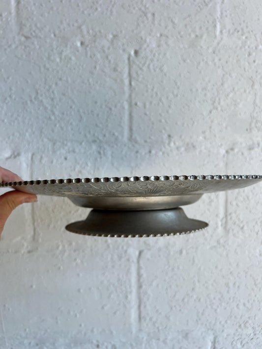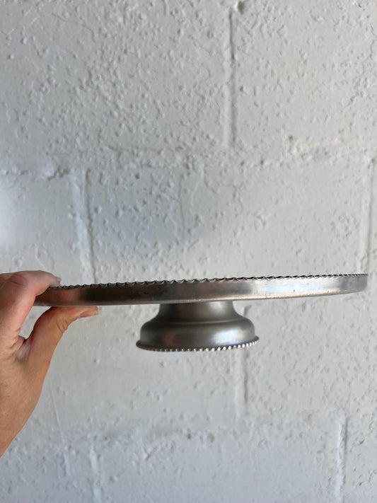 Vintage Aluminum Embossed Tray with Pedestal Stand 12.25” | Vintage Platter, Vintage Cake Stand, Tray, Vintage Kitchenware, Aluminum