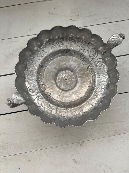 Vintage Aluminum Embossed Bowl & Pedestal with Handles | 11" Round Vintage Compote, Vintage Decorative Bowl, Vintage Kitchenware, Aluminum