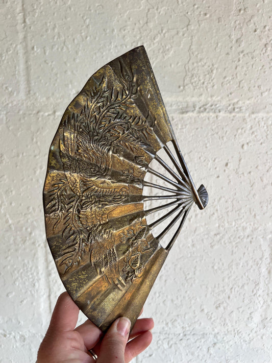 Vintage Brass Asian Fan, Brass Wall Art, Phoenix Rising Detail, Vintage Brass Animal, Brass Patina Wall Art