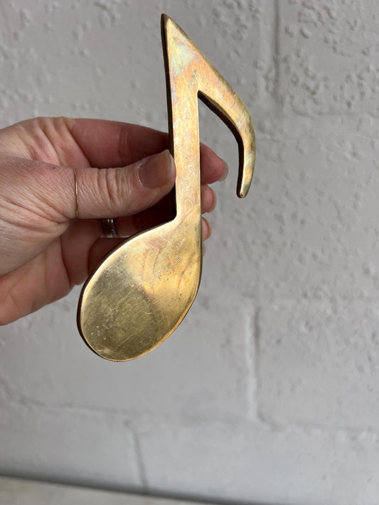 Vintage Brass Music Note Paper Weight | Unique Patinaed Brass Decor