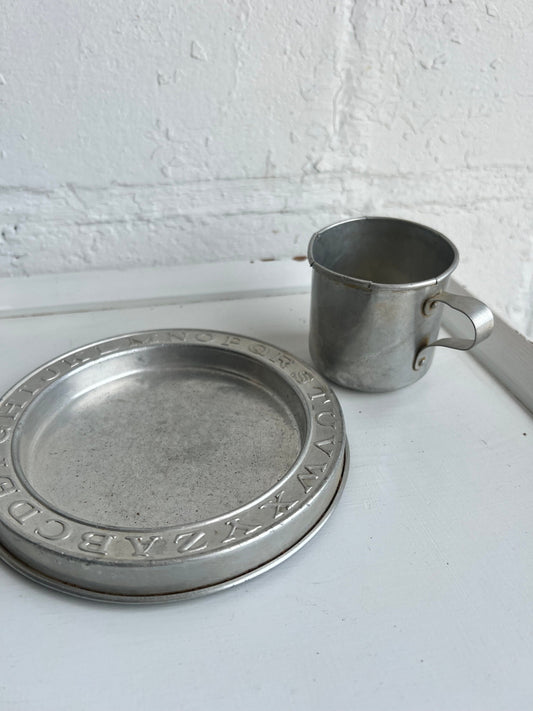 Vintage Aluminum Baby Alphabet Plate & Cup 6” | Vintage Baby, Vintage Nursery, Vintage Alphabet Dish