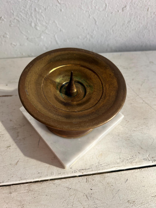Vintage Brass Candle Pillar Holder with Marble Base, Vintage Brass Home Decor, Brass Candle Holder