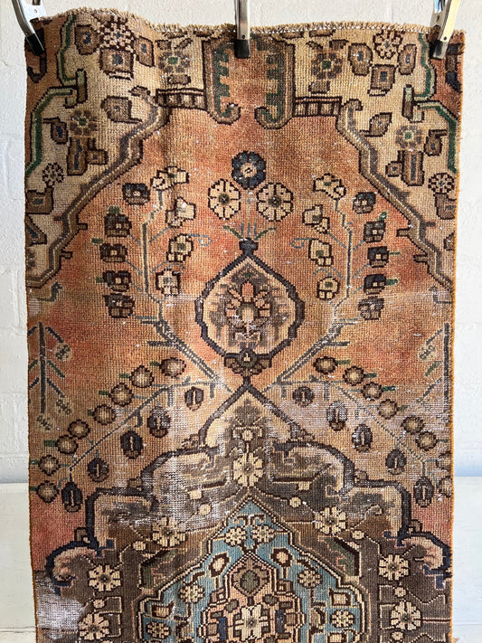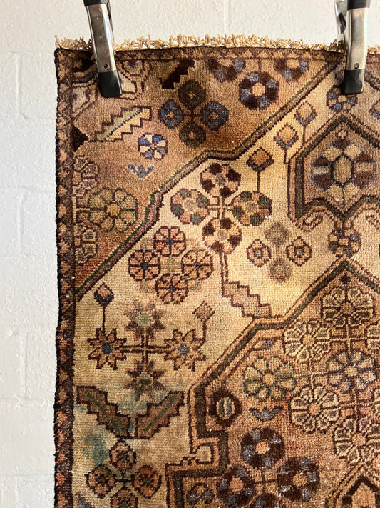 Vintage Oriental Rug 2.9’x4.7', Handmade, Muted Brown & Cream Geometric Pattern, Oriental rug Runner, Boho Runner, Hallway Rug, Kitchen Rug