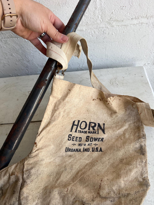 Vintage Horn Trade Mark Seed Sower, Bag & Spout, Vintage Farming, Farmhouse Decor