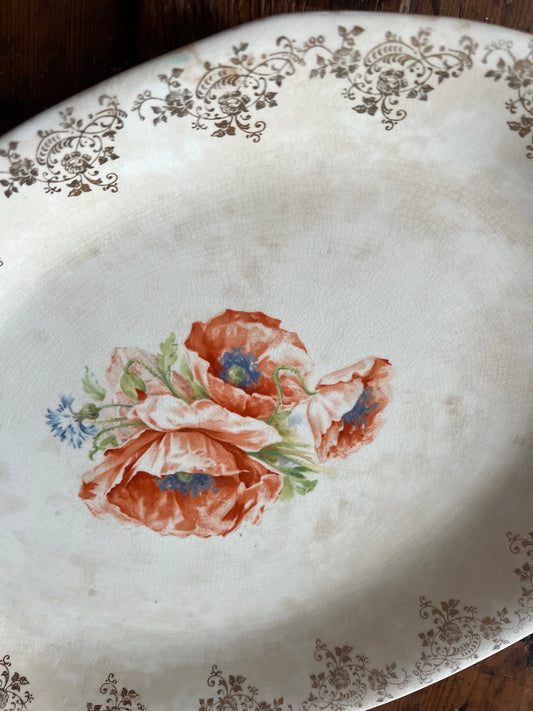 Vintage Homer Laughlin Floral & Gold Platter | Large 15" Antique Platter