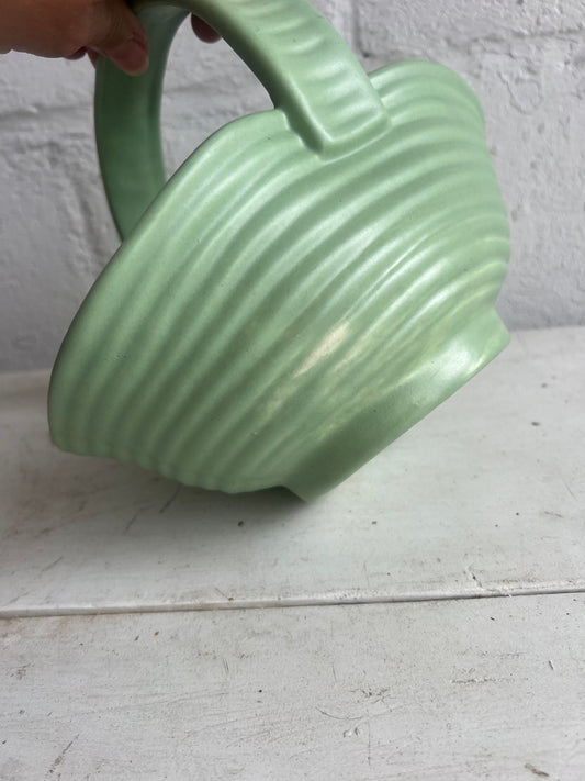 Vintage Matte Green Ceramic Basket | 8" tall aqua, seafoam green basket, ceramic decorative basket, tea green ceramic, vintage basket