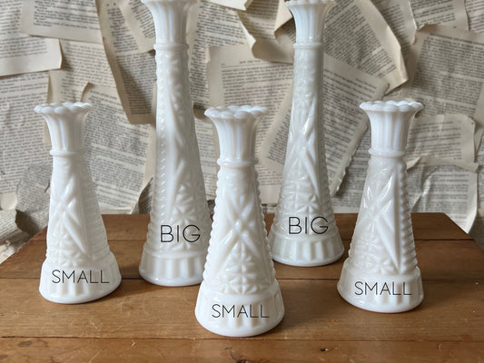 Vintage Milk Glass Vase {Two Sizes} | 9" & 6" Stars and Bars Milk Glass Vase | Milk Glass Decor | Vintage Wedding | Milk Glass Container