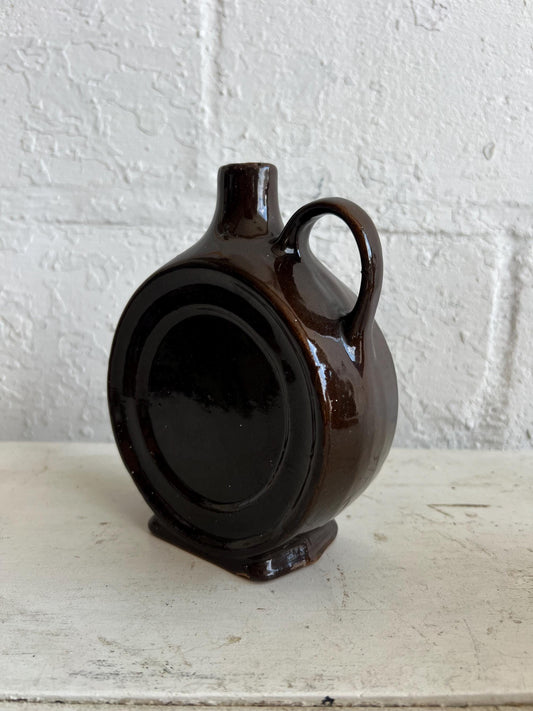 Vintage Old Pottery Brown Jug, Pottery Canteen, Farmhouse Decor, Old Jug