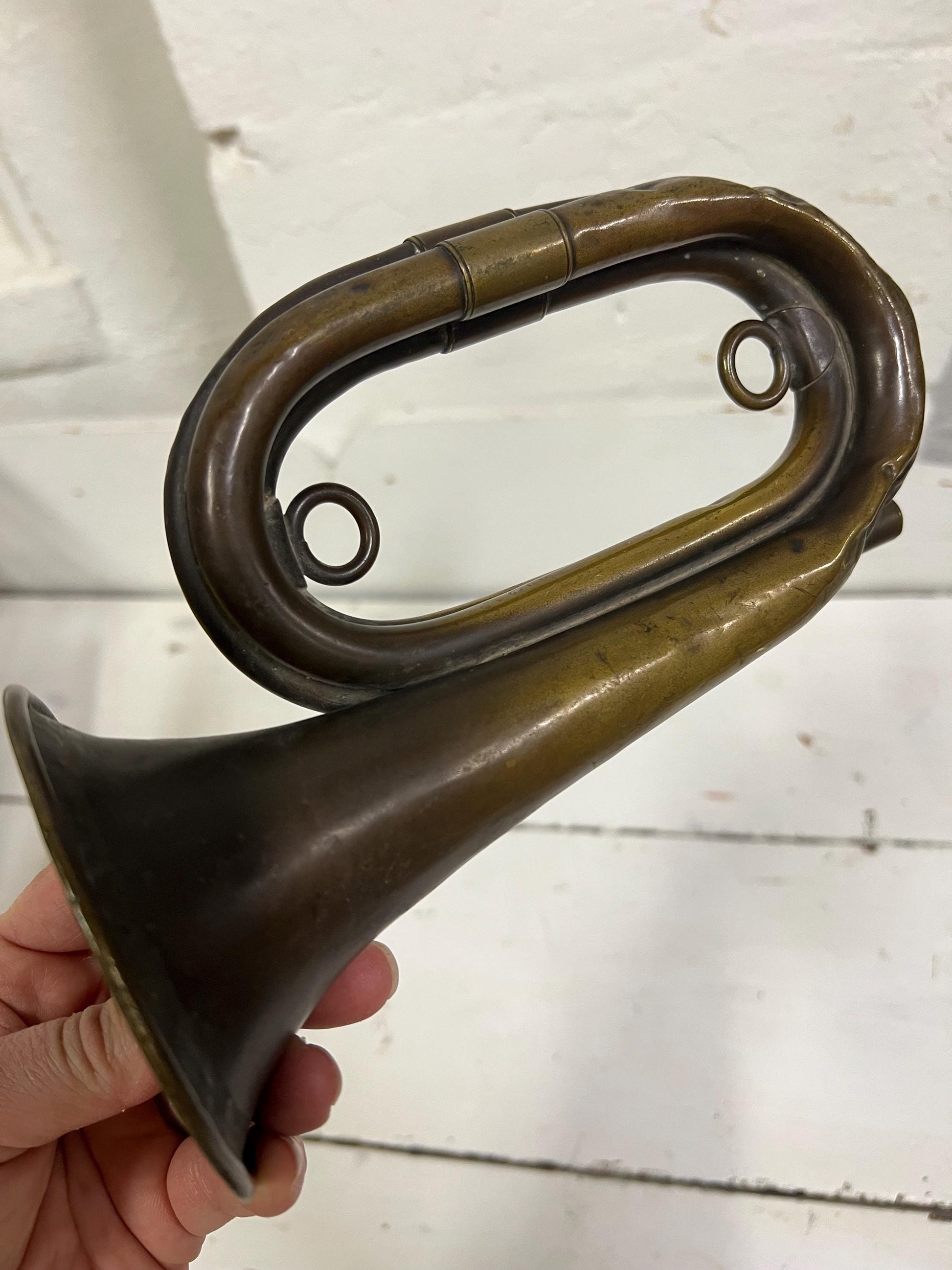 Charming old brass bugle horn. Great piece of character for your home decor. No mouthpiece included.