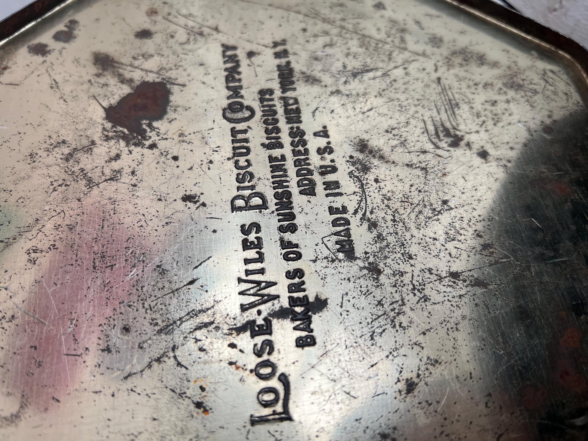 Vintage Brown Metal Tin Basket and Lid, Rusty Tin Vintage | Loose-Wiles Biscuit Company Tin Basket, Sunshine Biscuit Tin