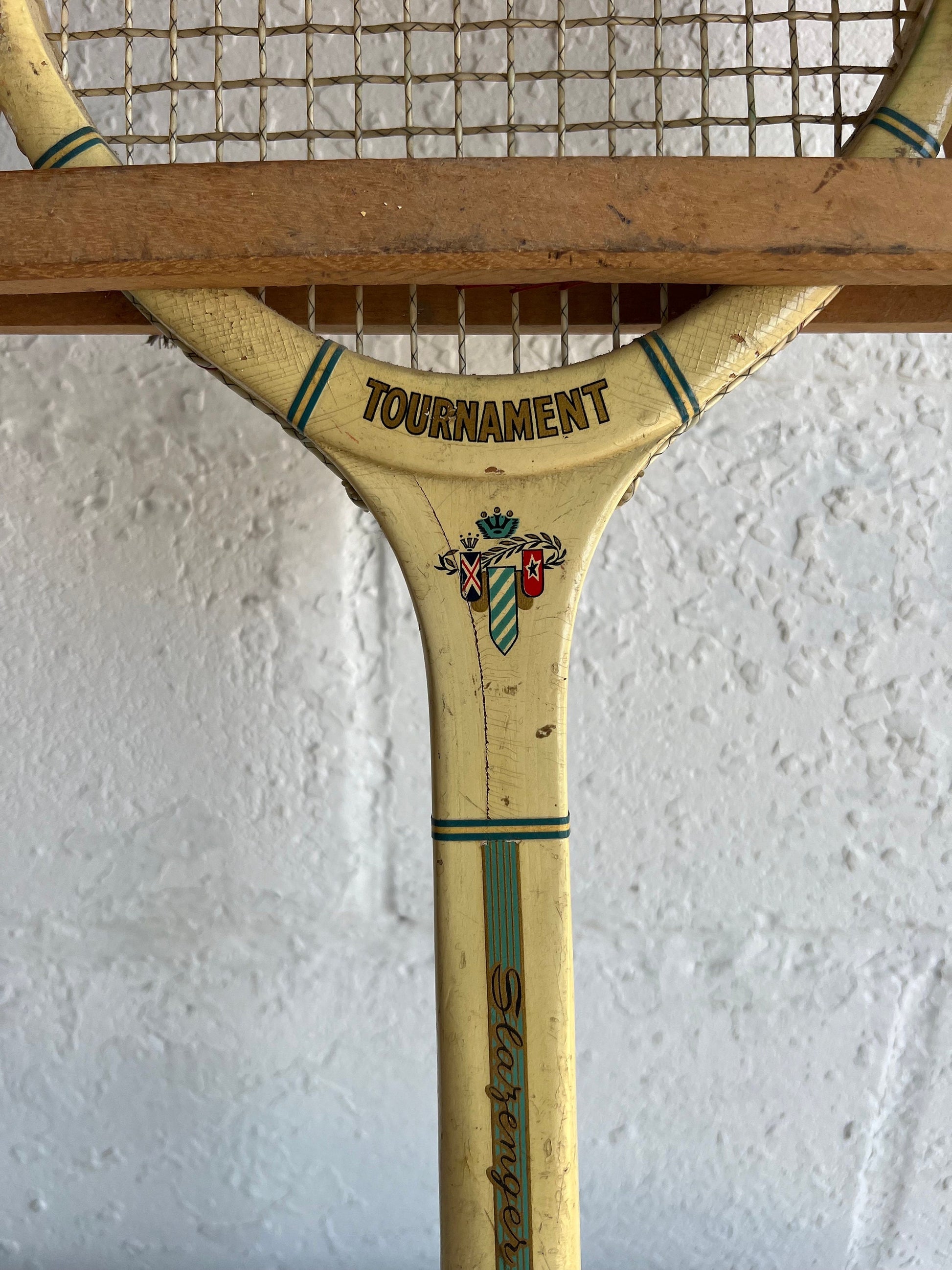 Includes {one} Vintage Slazenger Tournament tennis racket with wooden FRAME.
